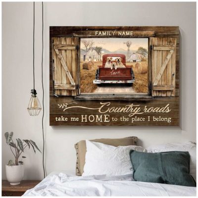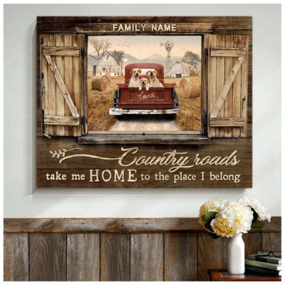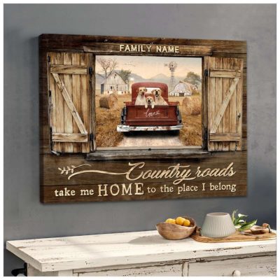 Hayooo Personalized Canvas Father’s Day Gifts for Dad and Husband, Father’s Day Gifts For Farmers, Cute Dogs On Old Pickup Truck Wall Art For Farm House Decor