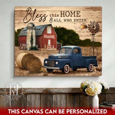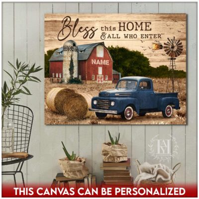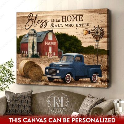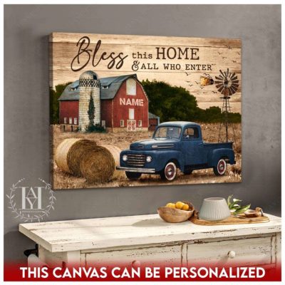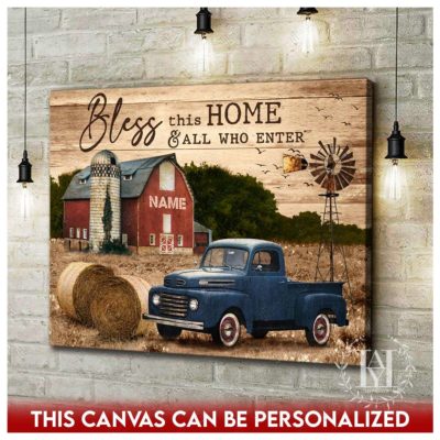 Hayooo Personalized Canvas Gifts For Farmers Red Barn And Rustic Pickup Truck Bless This Home And All Who Enter