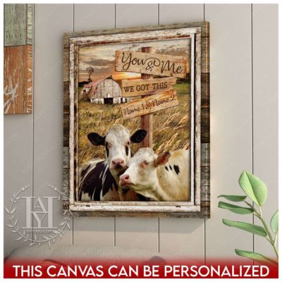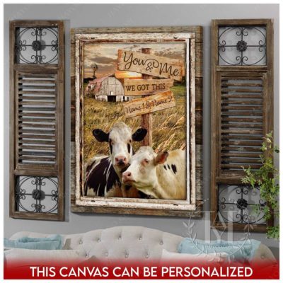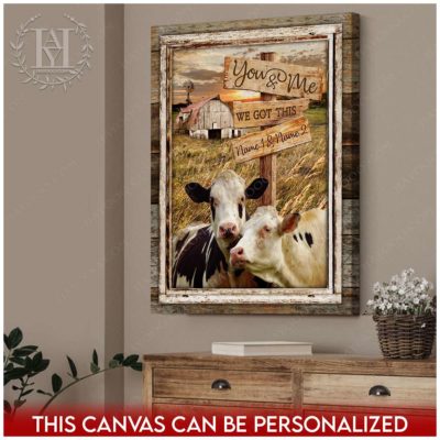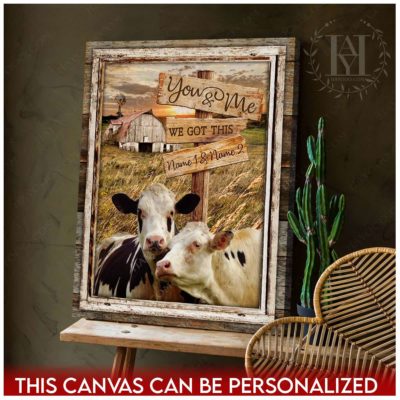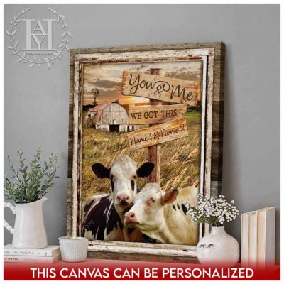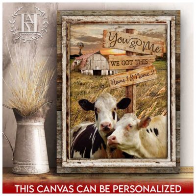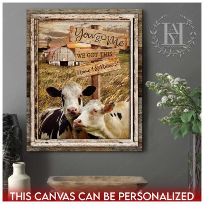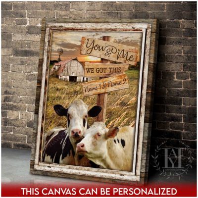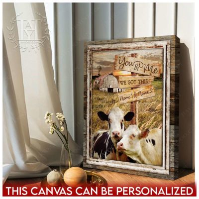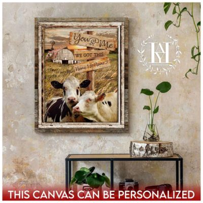Hayooo Personalized Canvas Beautiful Spring Barn With Cute Cows Wall Art For Farmhouse Decor
