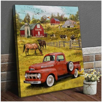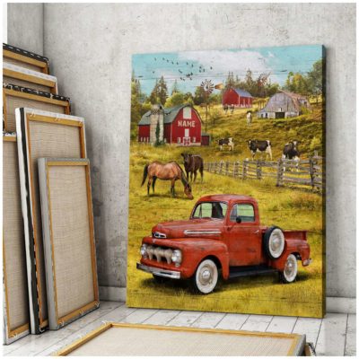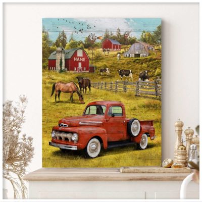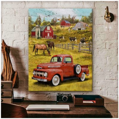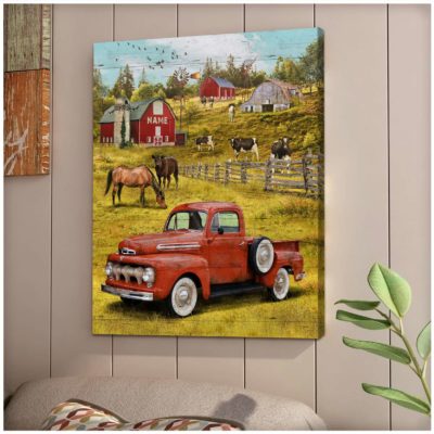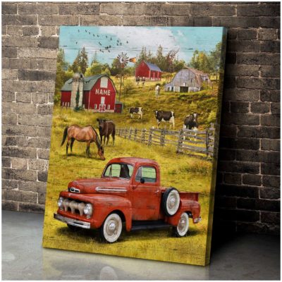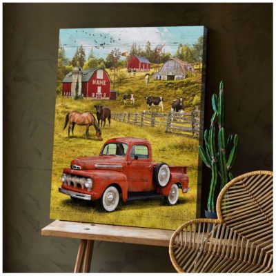 Hayooo Personalized Country Canvas Gifts For Farmers With Rustic Pickup Truck And Farm Animals Wall Art