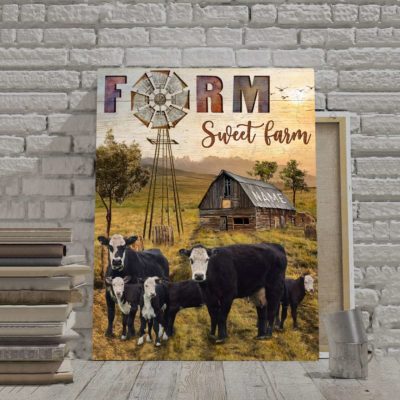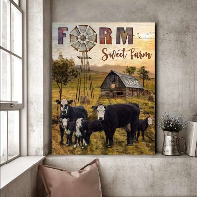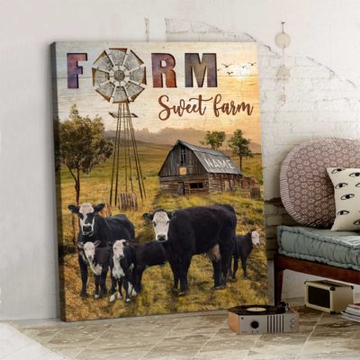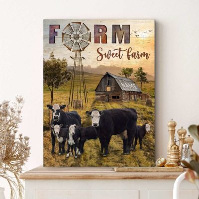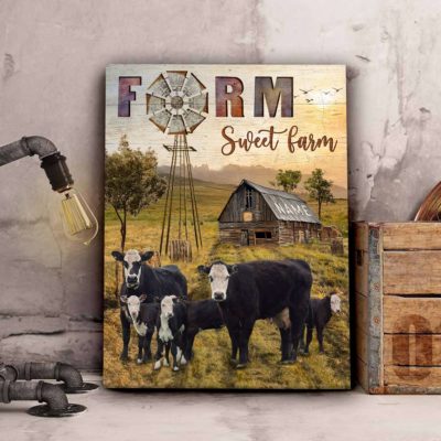 Hayooo Personalized Country Wall Art With Old Barn And Bald Faced Cows Farm Sweet Farm