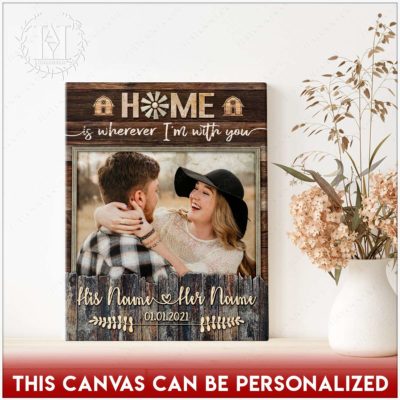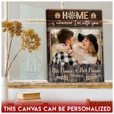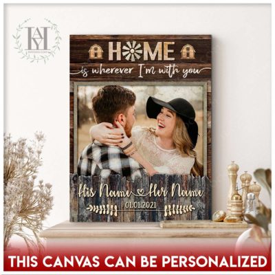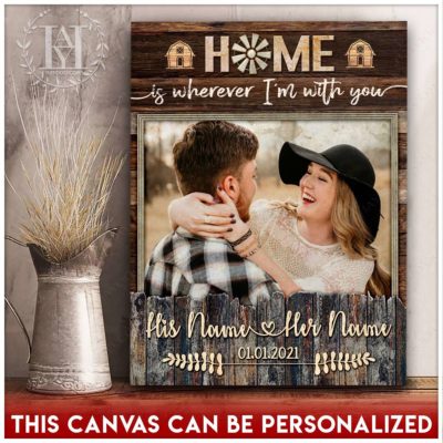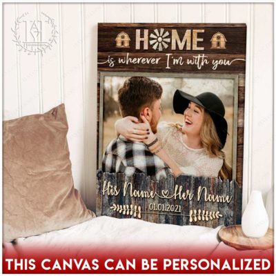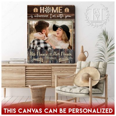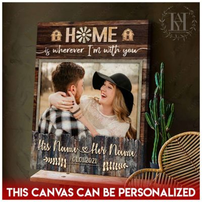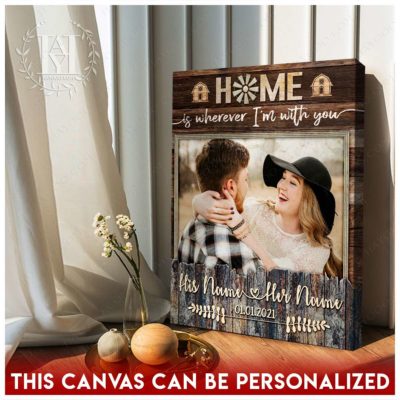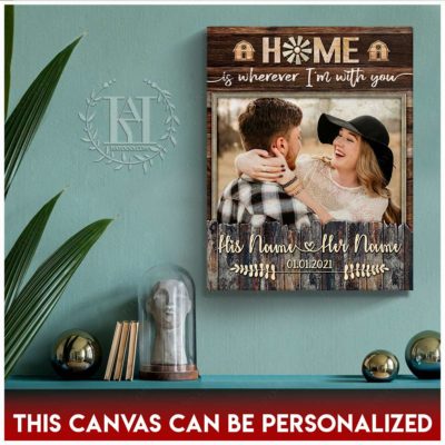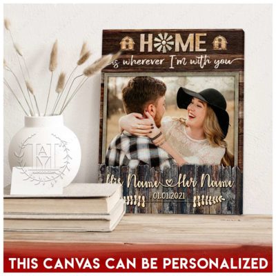 Hayooo Personalized Couple Canvas Home Is Wherever I Am With You Wall Art For Valentine Or Anniversary