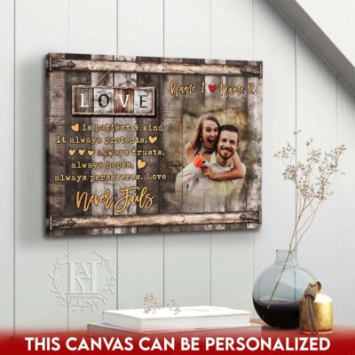Hayooo Personalized Couple Canvas Love Is Patient Love Is Kind Wall Art For Valentine Or Anniversary