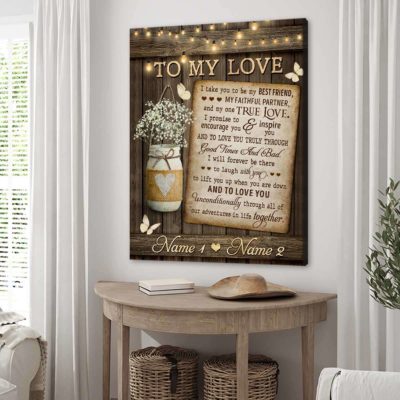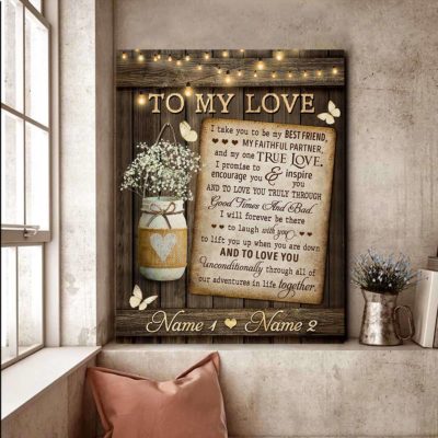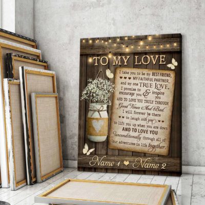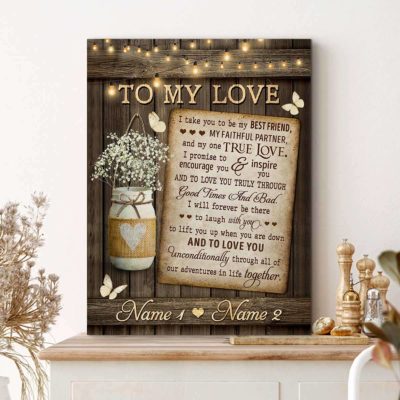 Hayooo Personalized Couple Canvas With Baby Breath In Mason Jar And Vintage Letter To My Love