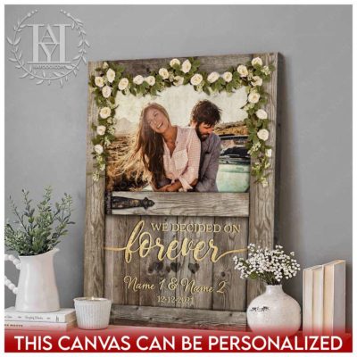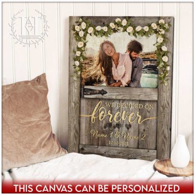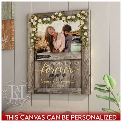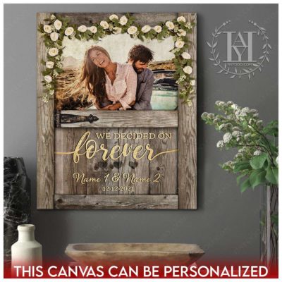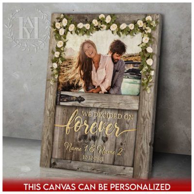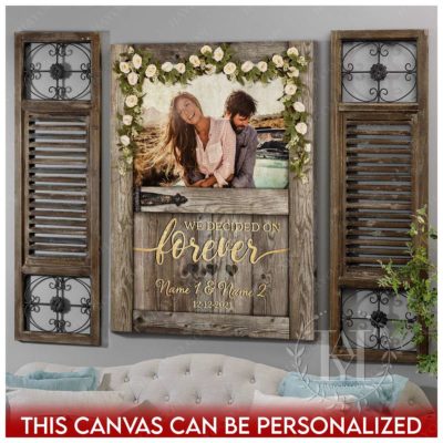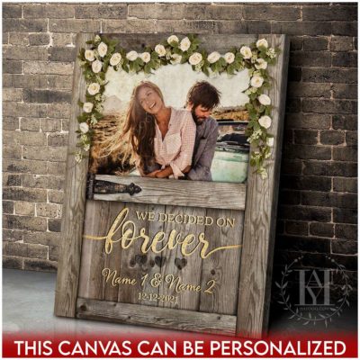 Hayooo Personalized Couple Canvas With Barn Door And Flower Garland We Decided On Forever