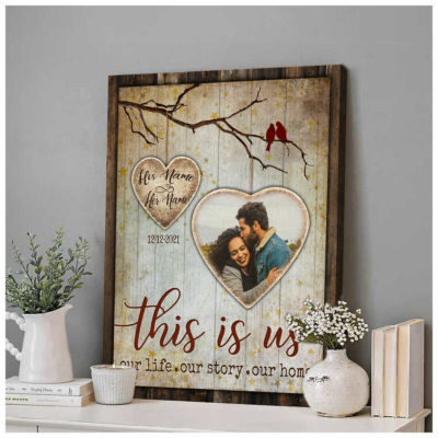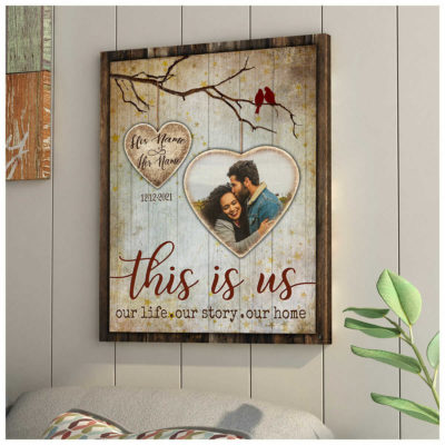 Hayooo Personalized Couple Canvas With Beautiful Heart Leaves