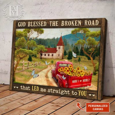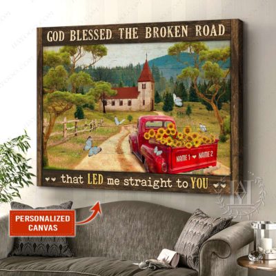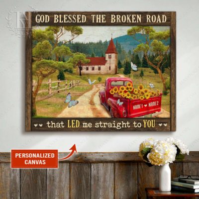 Hayooo Personalized Couple Canvas Gifts For Farmers With Country Scene And Sunflower Pickup Truck God Blessed The Broken Road