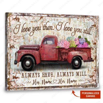 Hayooo Personalized Couple Canvas Gifts For Farmers With Flower Pickup Truck I Love You Then I Love You Still