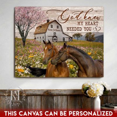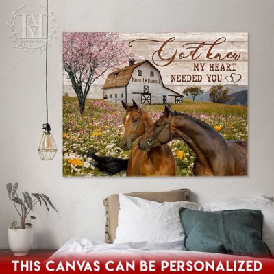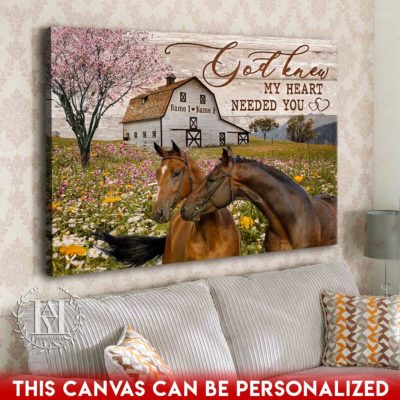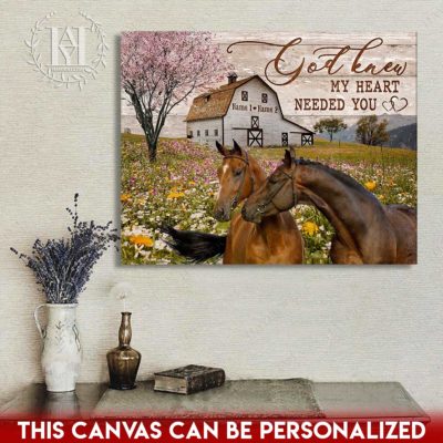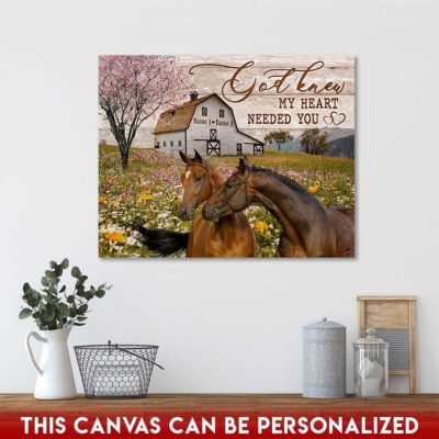 Hayooo Personalized Couple Canvas With Spring Barn And Couple Horses God Knew My Heart Needed You