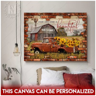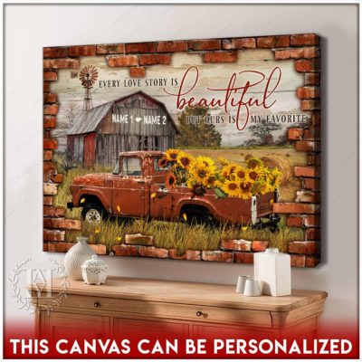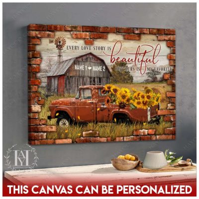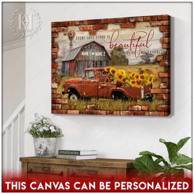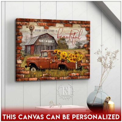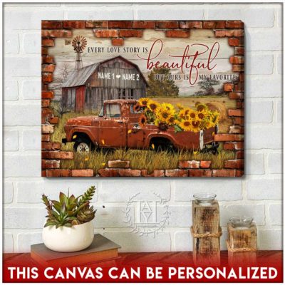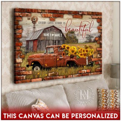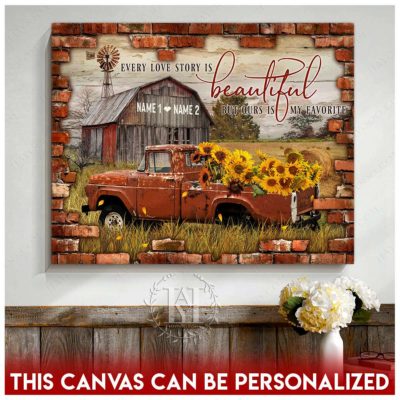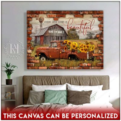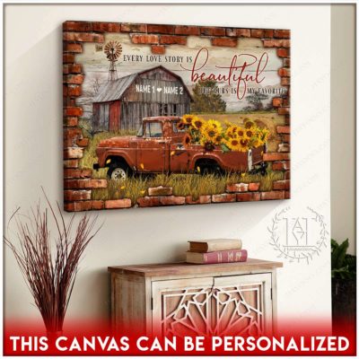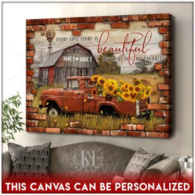 Hayooo Personalized Couple Canvas Gifts For Farmers With Sunflower Pickup Truck Every Love Story Is Beautiful