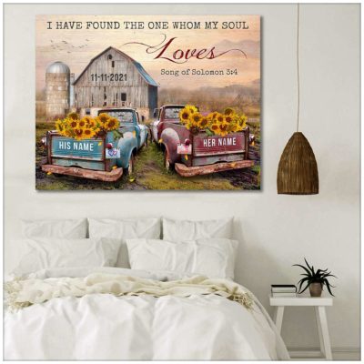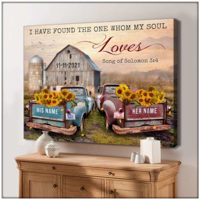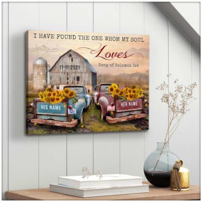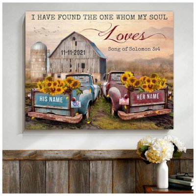 Hayooo Personalized Canvas 5 Years Wedding Anniversary Gifts for Husband, Gifts For Farmer Wife, Sunflower Pickup Truck Wall Art Romantic Gift For Your Partner