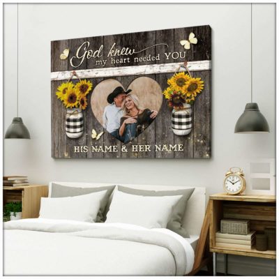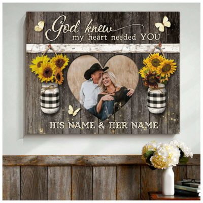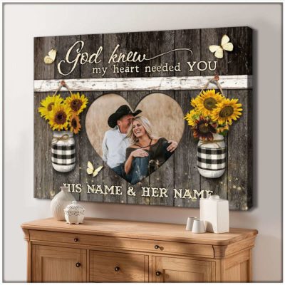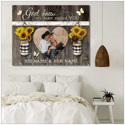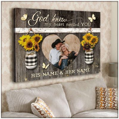 Hayooo Personalized Couple Canvas With Sunflowers In Mason Jars God Knew My Heart Needed You
