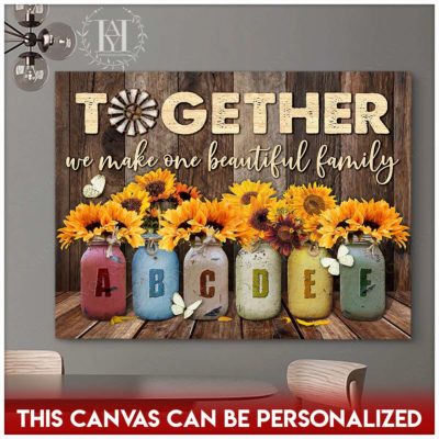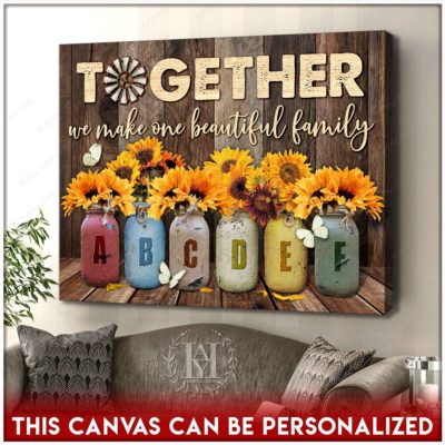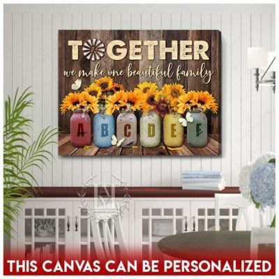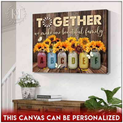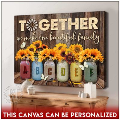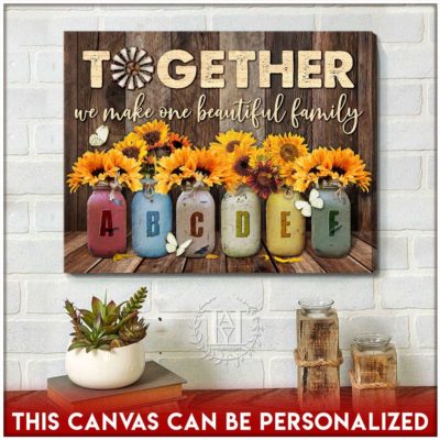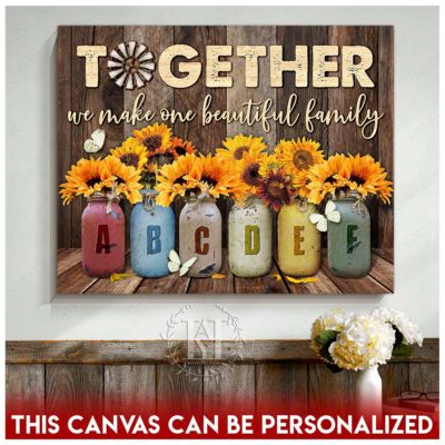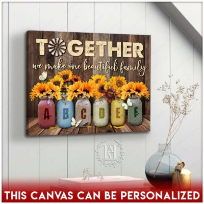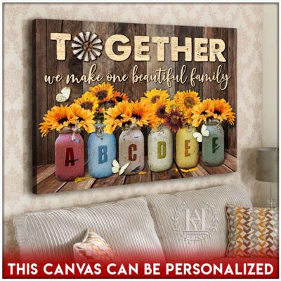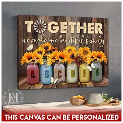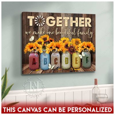 Hayooo Personalized Custom Mother’s day Gifts for Mom and Grandma Family Names Canvas Sunflowers In Mason Jars Together We Make One Beautiful Family
