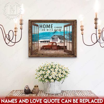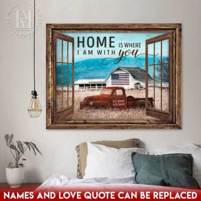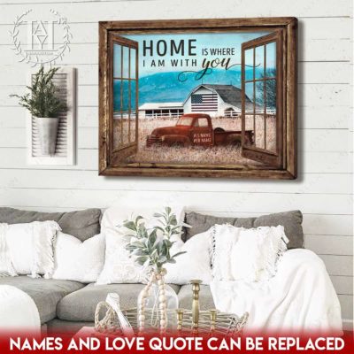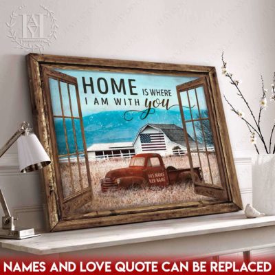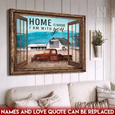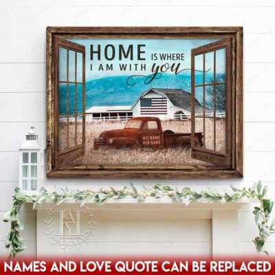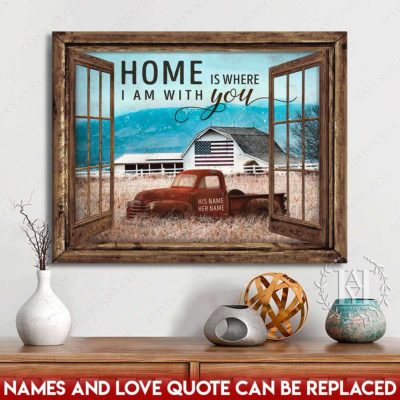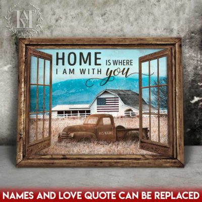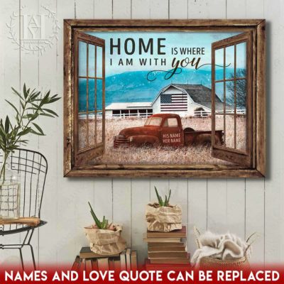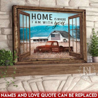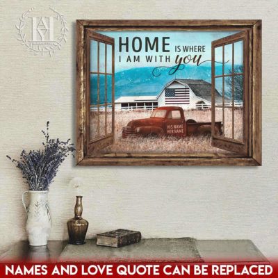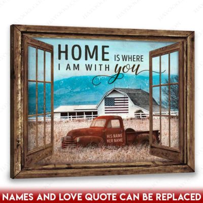 Hayooo Personalized Faux Window Canvas Wedding Anniversary Gift For Him And Her Pickup Truck And Old Barn Home