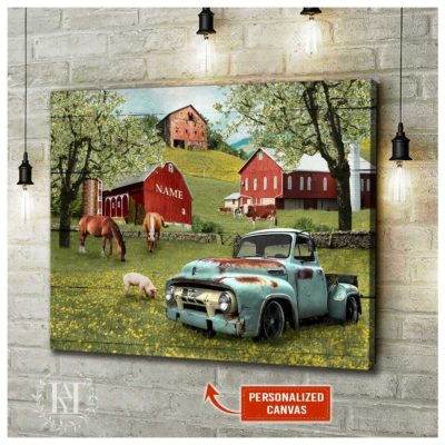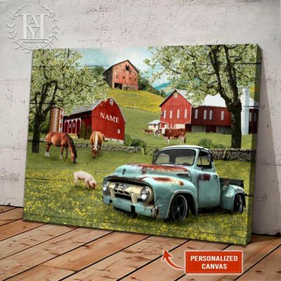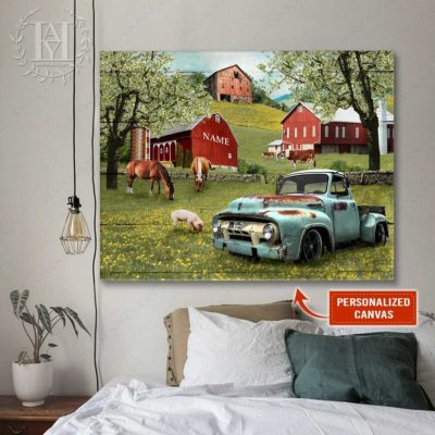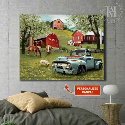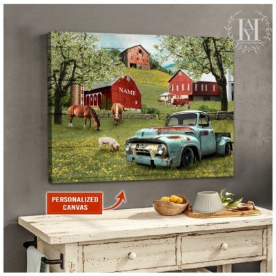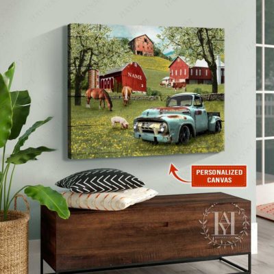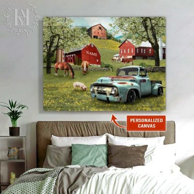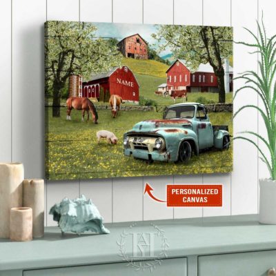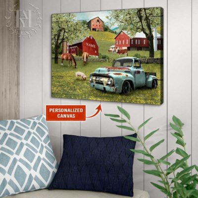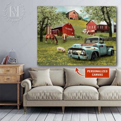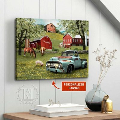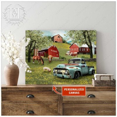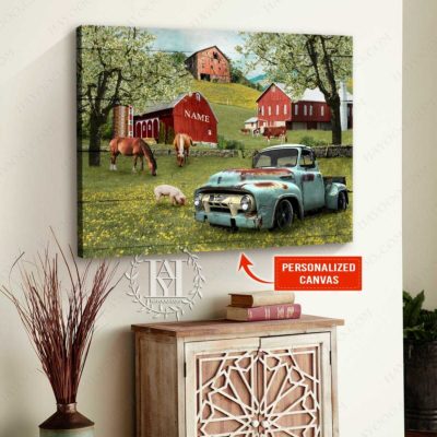 Hayooo Personalized Spring Canvas Gifts For Farmers Farmhouse Scene With Family Truck And Animals