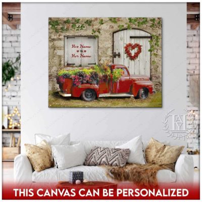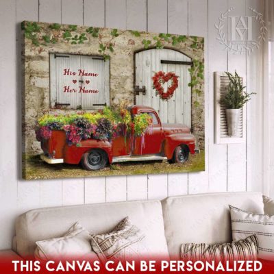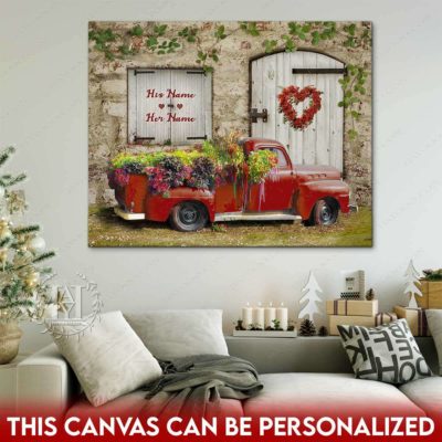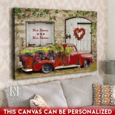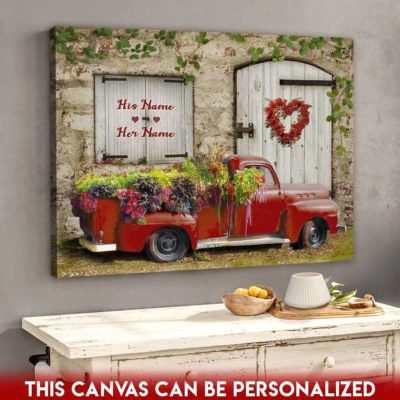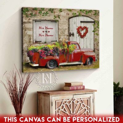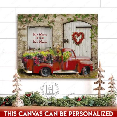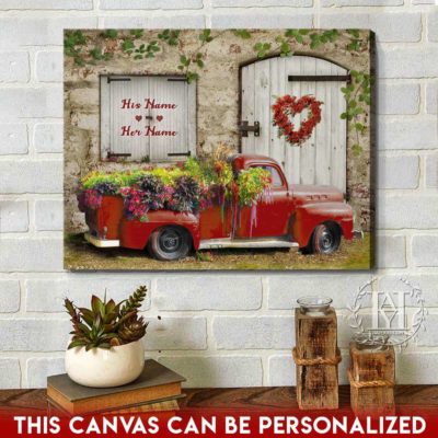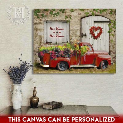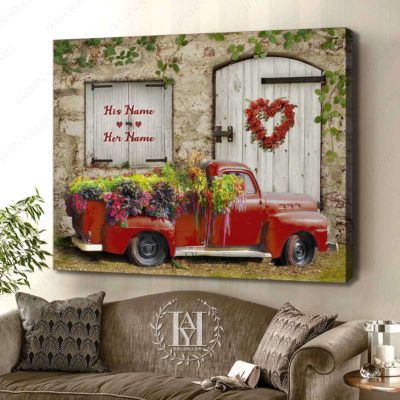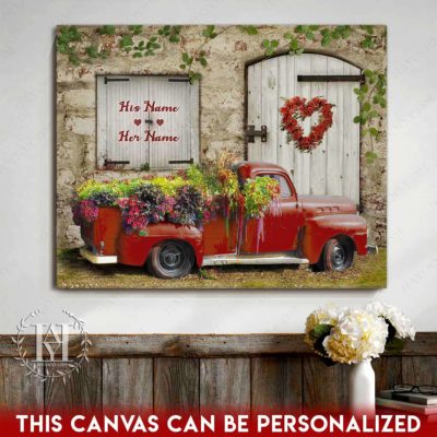 Hayooo Romantic Couple Canvas Gifts For Farmers With Flower Pickup Truck And Country Scene Best Gift For Valentine Or Anniversary