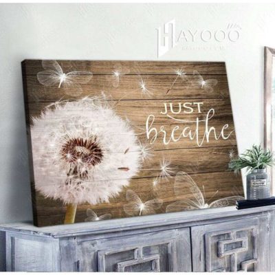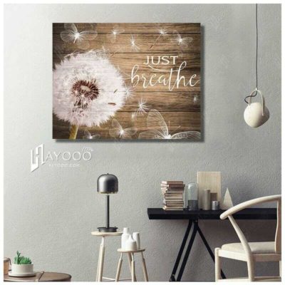 Hayooo Top Beautiful Dandelion With Butterflies Canvas Just Breathe Wall Art For Farmhouse Decor