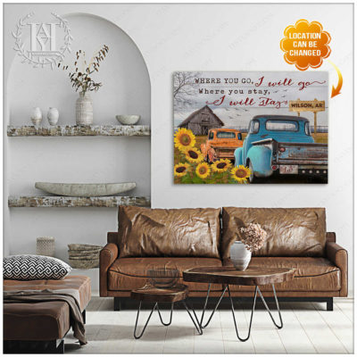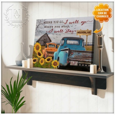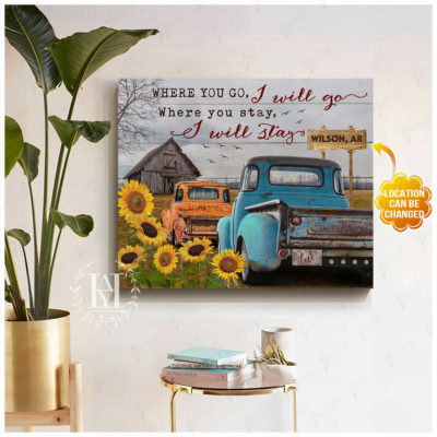 Hayooo Canvas Custom Location With Rustic Couple Pickup Trucks Where You Go I Will Go Best Gift For Your Loved One