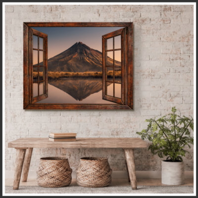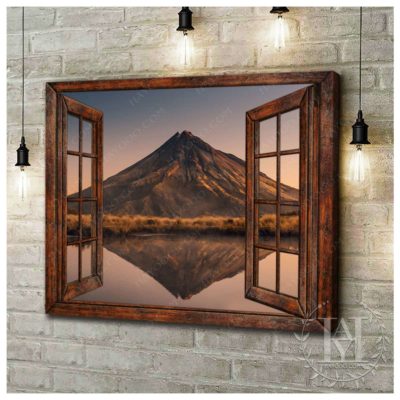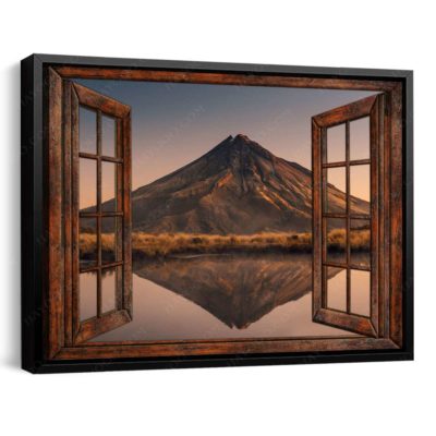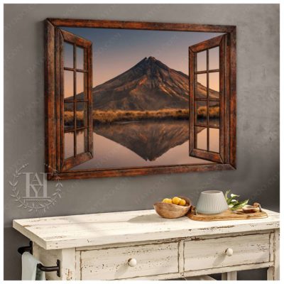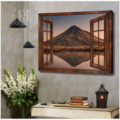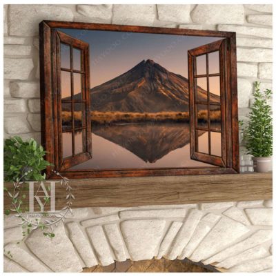Hayooo Faux Window Canvas Picturesque Volcano Scenery Wall Art For Home Decor