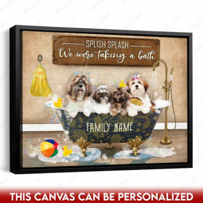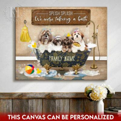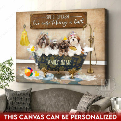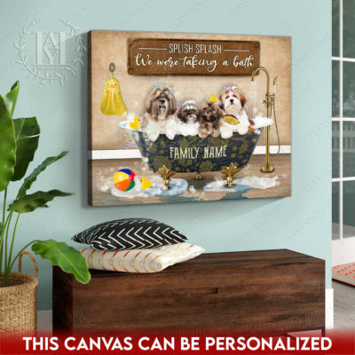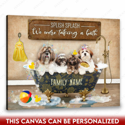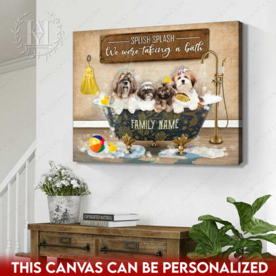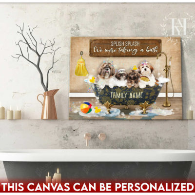 Pet lovers, betcha fall in love with this funny bathroom wall art featuring your cute dog images. Let’s dedicate a spare wall to hang this masterpiece.